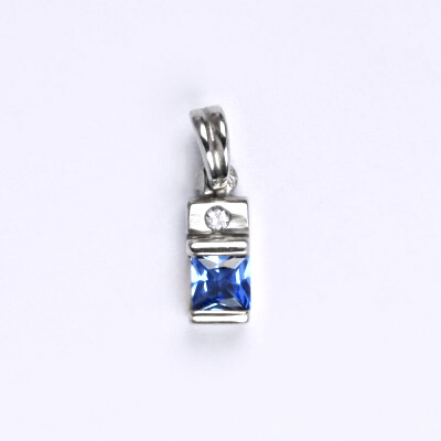 Přívěsek je vyrobený z bílého zlata 14 karátů 585/1000, zdobený syntetickým akvamarínem. Celková velikost přívěsku včetně ouška je 15 mm. Při více kusech skladem je váha orientační.