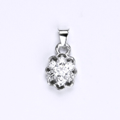 Přívěsek, kytička, vyrobený z bílého zlata 14 karátů 585/1000, zdobený syntetickým zirkonem. Celková velikost přívěsku včetně ouška je 15 mm. Při více kusech skladem je váha orientační.