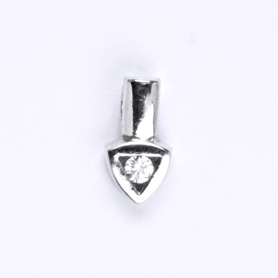 Přívěsek vyrobený z bílého zlata 14 karátů 585/1000, zdobený syntetickým zirkonem. Celková velikost přívěsku včetně ouška je 13 mm. Při více kusech skladem je váha orientační.