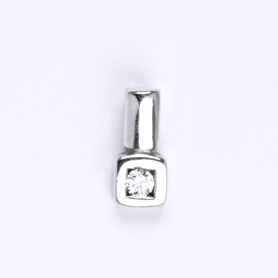 Přívěsek vyrobený z bílého zlata 14 karátů 585/1000, zdobený syntetickým zirkonem. Celková velikost přívěsku včetně ouška je 12 mm. Při více kusech skladem je váha orientační.