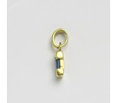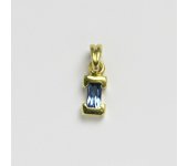 Přívěsek ze žlutého zlata s akvamarínem syntetickým, celková výška přívěsku včetně ouška je 15 mm. Meteriál je žluté zlato 585/1000