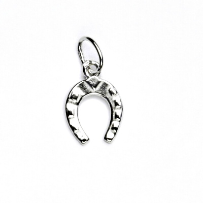Přívěsek z bílého zlata ve tvaru podkovy. Materiál je zlato 585/1000. Orientační váha přívěsku je 0,51 g. Rozměr přívěsku je 16 mm včetně očka na výšku a 8 mm na šířku.