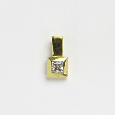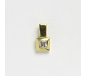 Přívěsek ze žlutého zlata 585/1000 zdobený syntetickým zirkonem. Celková výška závěsu včetně ouška je 11 mm. Při více kusech skladem je váha orientační.