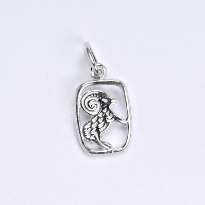 Zlatý přívěšek znamení zvěrokruhu beran. Celková výška přívěšku je 17 mm. Orientační váha přívěsku je 0,68 g. Materiál je 14 karátové bílé zlato 585/1000.