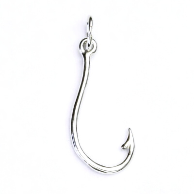 Přívěsek z bílého zlata - háček na ryby. Materiál je zlato 585/1000. Orientační váha přívěsku je 0,62 g. Rozměr přívěsku je 24 mm včetně očka na výšku a 9 mm na šířku.