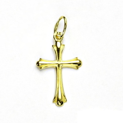 Přívěsek ze žlutého zlata ve tvaru křížku. Materiál je zlato 585/1000. Rozměr přívěsku je 23 mm včetně očka na výšku a 11 mm na šířku. Orientační váha přívěsku je 0,60 g.
