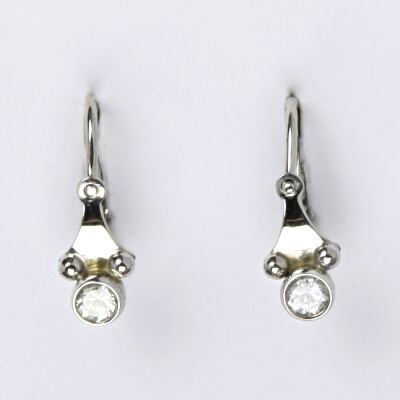 Náušničky jsou vyrobeny z bílého zlata 14 karátů 585/1000, zdobeny syntetickým čirým zirkonem. Zapínání na náušničkách je klasické dětské zapínání na patent. Celková velikost náušnice je 15 mm.