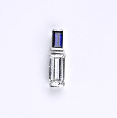 Přívěsek z bílého zlata 14 karátů 585/1000 zdobený syntetickým spinelem a zirkonem. Celková velikost přívěsku včetně ouška je 14 mm. Při více kusech skladem je váha orientační.