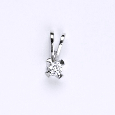 Přívěsek vyrobený z bílého zlata 14 karátů 585/1000, zdobený syntetickým zirkonem. Celková velikost přívěsku včetně ouška je 12 mm. Při více kusech skladem je váha orientační.