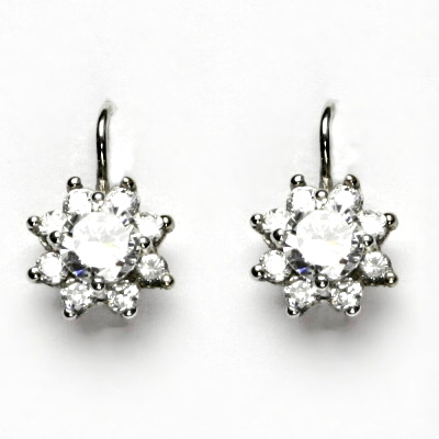 Dámské náušnice ve tvaru kytičky jsou zdobeny čirými zirkony a jsou vyrobeny ze žlutého zlata. Materiál je zlato 585/1000. Celková výška náušice je 16,5 mm a rozměr kytičky je 11x11 mm.
