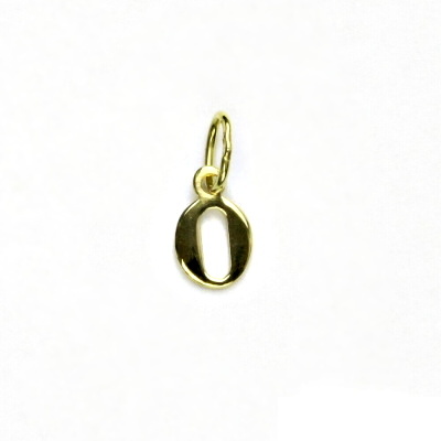 Přívěsek ze žlutého zlata - písmeno O. Materiál je zlato 585/1000. Rozměr přívěsku je 12 mm včetně očka a 5 mm na šířku. Orientační váha přívěsku je 0,25 g.