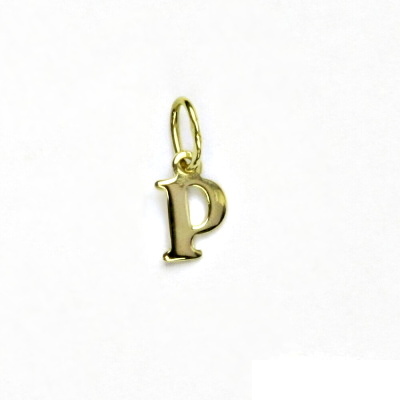 Přívěsek ze žlutého zlata - písmeno P. Materiál je zlato 585/1000. Rozměr přívěsku je 12 mm včetně očka a 5 mm na šířku. Orientační váha přívěsku je 0,25 g.