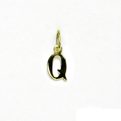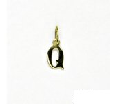 Přívěsek ze žlutého zlata - písmeno Q. Materiál je zlato 585/1000. Rozměr přívěsku je 13 mm včetně očka a 5 mm na šířku. Orientační váha přívěsku je 0,23 g.