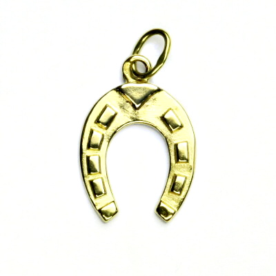 Přívěsek ze žlutého zlata ve tvaru podkovy. Materiál je zlato 585/1000. Orientační váha přívěsku je 1,08 g. Rozměr přívěsku je 22 mm včetně očka na výšku a 12 mm na šířku.