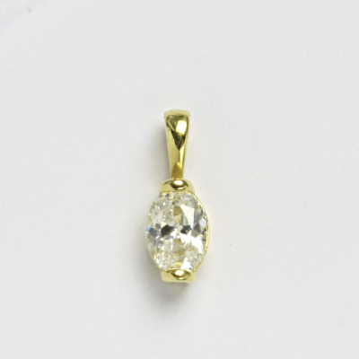 Přívěsek ze žlutého zlata 585/1000 zdobený syntetickým zirkonem. Celková výška závěsu včetně ouška je 15 mm. Při více kusech skladem je váha orientační.