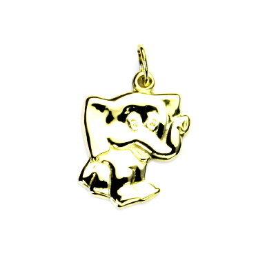 Přívěsek ze žlutého zlata - slůně. Materiál je zlato 585/1000. Orientační váha přívěsku je 1,22 g. Rozměr přívěsku je 16 mm včetně očka na výšku a 11 mm na šířku.
