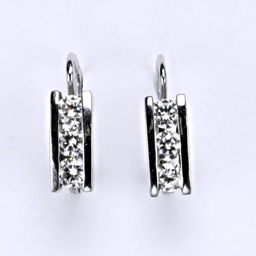 Náušnice jsou vyrobeny ze bílého zlata 14 karátů 585/1000, zdobeny syntetickými zirkony 3,25 mm. Zapínání na náušnicích je klasický patent. Celková velikost náušnice 16 mm. Orientační váha náušnic je 2,74 g.