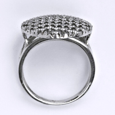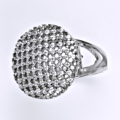Prsten je vyrobený z bílého zlata 14 karátů 585/1000, bohatě zdobený syntetickým zirkonem. Velikost prstenu 57.