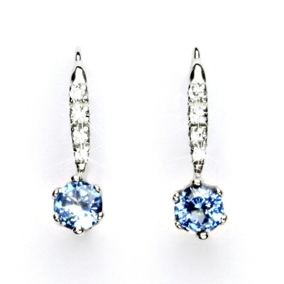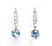 Náušnice z bílého zlata se zirkony čiré a modé barvy. Materiál je zlato 585/1000. Náušnice mají zapínání na klapku. Celková výška náušnice je 19 mm. Orientační váha náušnic je 2,50 g.