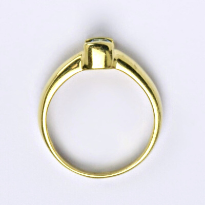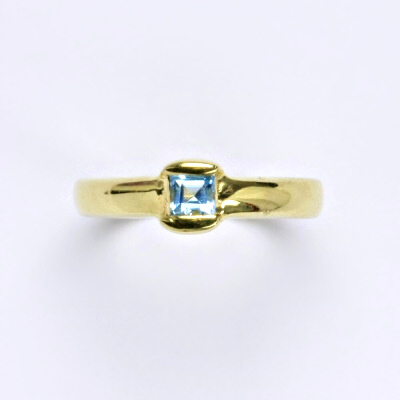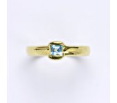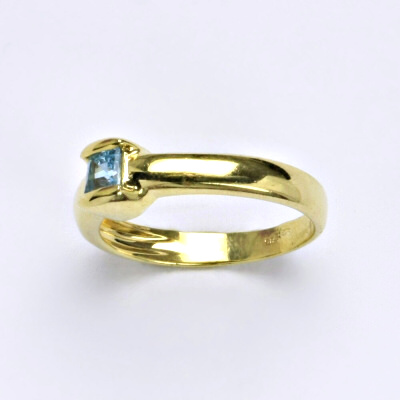 Prsten je vyrobený ze žlutého zlata 14 karátů 585/1000, zdobený syntetickým akvamarínem. Velikost prstenu je 55,5. Při více kusech skladem je váha šperku pouze orientační.