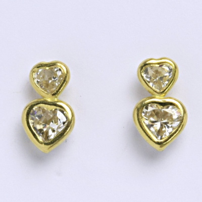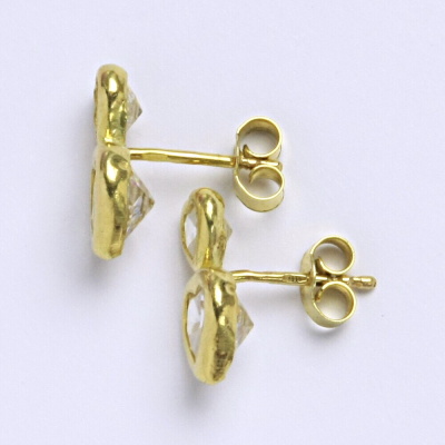 Náušnice vyrobené ze žlutého zlata 585/1000 osazeny syntetickým zirkonem. Zapínání na náušnicích je puzeta. Velikost náušnice je 13 mm. Při více kusech skladem, je váha jen orientační.