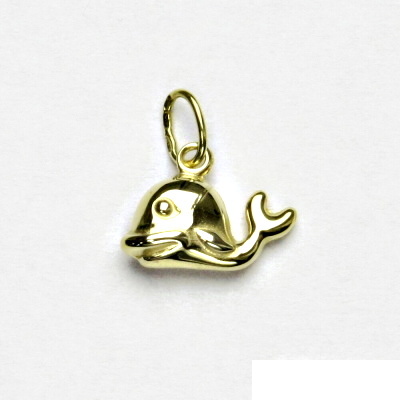 Přívěsek ze žlutého zlata má tvar velryby. Materiál je zlato 585/1000. Rozměr přívěsku je 14 mm včetně očka na výšku a 13mm na šířku. Orientační váha přívěsku je 1,98 g.