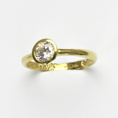 Zlatý prsten s čirým zirkonem. Průměr zirkonu 4,75 mm. Materiál je zlato 585/1000. Orientační váha prstenu je 1,28 g. Prsten máme skladem ve velikosti 55.