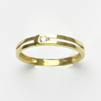 Zlatý prsten s čirým zirkonem. Rozměr zirkonu 2,5 mm. Materiál je zlato 585/1000. Orientační váha prstenu je 1,65 g. Prsten máme skladem ve velikosti 55.