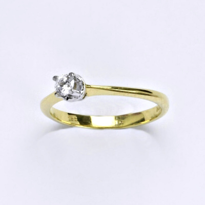 Prsten je v kombinaci žluté a bílé zlato 14 karátů 585/1000, zdobený syntetickým zirkonem. Velikost prstenu je 56. Při více kusech skladem je váha šperku pouze orientační.