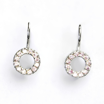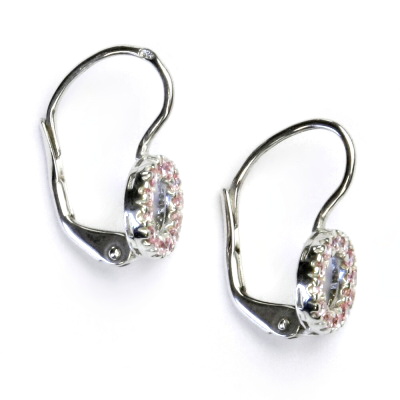 Náušnice z bílého zlata jsou zdobeny zirkony v barvě ametystu o průměru 1,2 mm. Materiál je zlato 585/1000. Orientační váha náušnic je 1,68 g. Náušnice mají zapínání na patent. Průměr zdobné části náušnice je 8 mm. Celková výška náušnice je 17 mm.