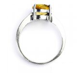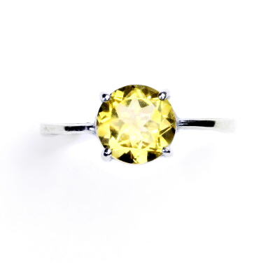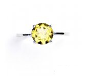Prstýnek z bílého zlata je zdoben přírodním citrínem o průměru 8 mm.Materiál je zlato 585/1000. Orientační váha prstenu ve velikosti 55 je 3,4 g. Je vhodný i jako zásnubní prsten.