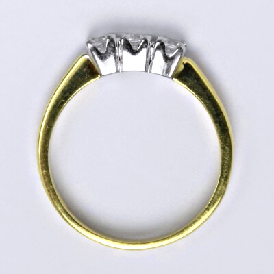 Prsten je vyrobený v kombinaci bílé a žluté zlato 14 karátů 585/1000. Prsten je zdobený syntetickým zirkonem. Průměr zirkonu je 3 mm. Velikost prstenu je 56.