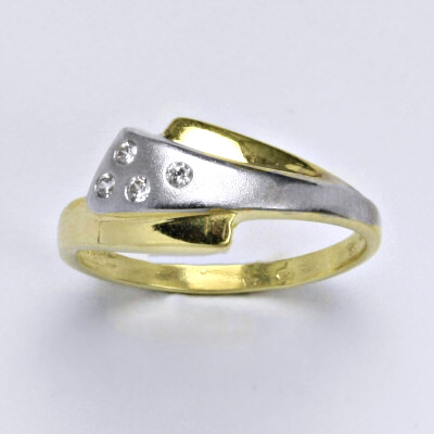 Prsten je vyrobený v kombinaci žluté a bílé zlato 14 karátů 585/1000, zdobený syntetickým zirkonem. Velikost prstenu je 57,5.