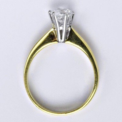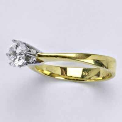 Prsten je vyrobený v kombinaci žluté a bílé zlato 14 karátů 585/1000, zdobený syntetickým zirkonem. Průměr kamene je 6 mm. Velikost prstenu je 54,5.