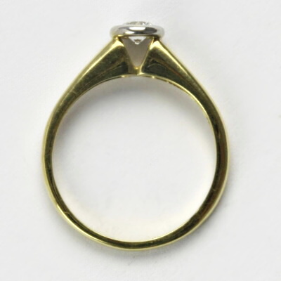 Prsten je vyrobený z kombinace žlutého a bílého zlata. Prsten je zdoben syntetickým zirkonem. Materiál je zlato o ryzosti 14 karátů 585/1000. Orientační váha prstenu je 2,44 g. Prsten máme skladem ve velikosti 54. Průměr zirkonu je 4 mm.