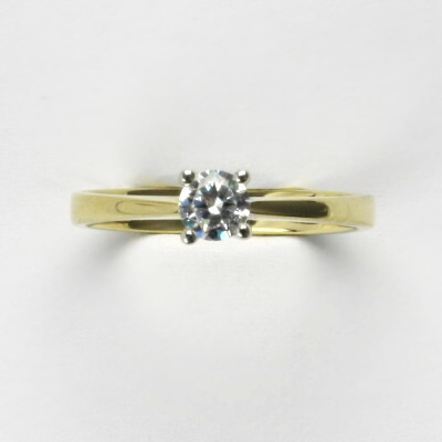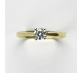 Prsten je vyrobený z kombinace žlutého a bílého zlata. Do zlata je zafasovaný zirkon. Materiál je zlato o ryzosti 14 karátů 585/1000. Orientační váha prstenu je 2,27 g. Prsten máme skladem ve velikosti 55. Průměr zirkonu je 4 mm.