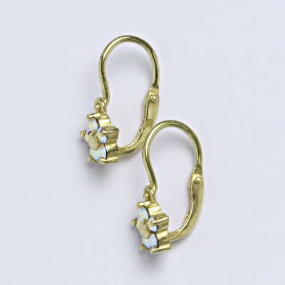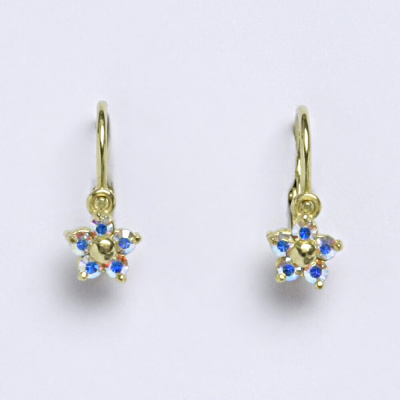 Dětské náušnice ze žlutého zlata se Swarovski AB krystalem. Celková výška náušnice je 13 mm. Materiál je zlato 585/1000.Orientační váha páru dětských náušnic je 1,03 g.