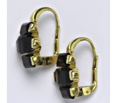 Zlaté náušnice zdobené přírodním granátem. Materiál je žluté zlato 14 karátů 585/1000. Celková velikost náušnice je 18 mm. Zapínání na náušnicích je patent. Při více kusech skladem je váha šperku orientační.