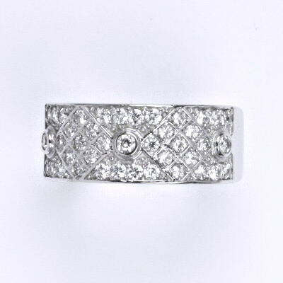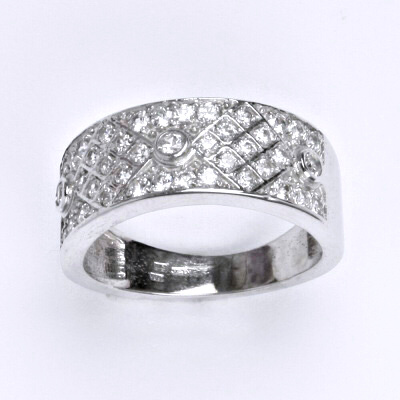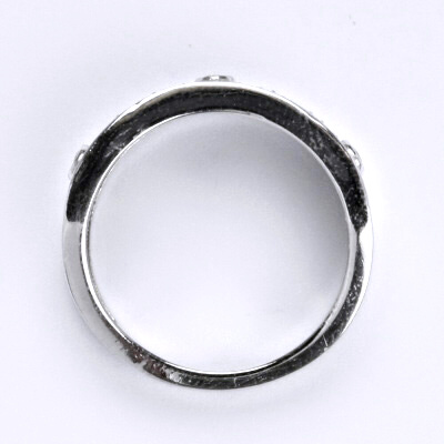 Prsten je vyrobený z bílého zlata 14 karátů 585/1000, bohatě zdobený syntetickým zirkonem. Velikost prstenu 57.