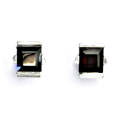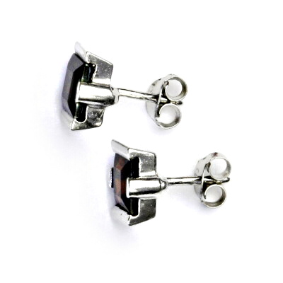 Náušnice z bílého zlata jsou zdobny přírodním granátem o rozměru 6x6 mm. Materiál je zlato 585/1000. Orientační váha náušnic je 3,18 g. Náušnice mají zapínání na šroubek a jsou rhodiované.