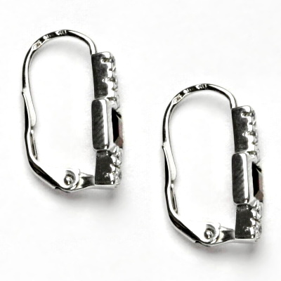 Dámské náušnice jsou vyrobeny z bílého zlata a jsou zdobeny přírodním granátem a čirými zirkony. Materiál je zlato 585/1000. Celková výška náušnice je 18 mm. Rozměr zdobné části je 15x6 mm. Náušnice mají zapínání na klapku a jsou rhodiované.
