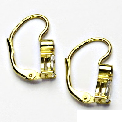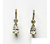 Dámské náušnice jsou zdobeny čirými zirkony a jsou vyrobeny ze žlutého zlata. Materiál je zlato 585/1000. Náušnice mají zapínání na klapku. Celková výška náušnice je 17,5 mm a rozměr zdobné části je 10x4 mm. Orientační váha je 2,3 g.