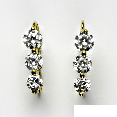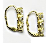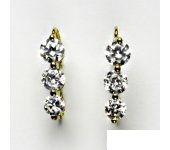 Dámské náušnice jsou zdobeny čirými zirkony a jsou vyrobeny ze žlutého zlata. Materiál je zlato 585/1000. Celková výška náušnice je 20 mm a průměr zdobné části je 18x5 mm. Náušnice mají zapínání na klapku. Orientační váha náušnic je 3,4 g.