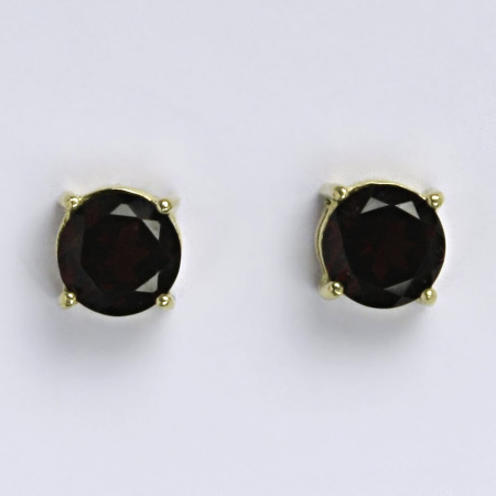Zlaté náušnice ze žlutého zlata 14 karátů s přírodním granátem. Velikost kamene je 7 mm. Náušnice mají zapínání na na šroubek. Orientační váha náušnic je 2,53 g.