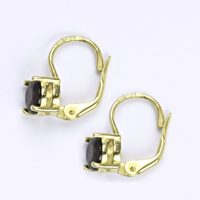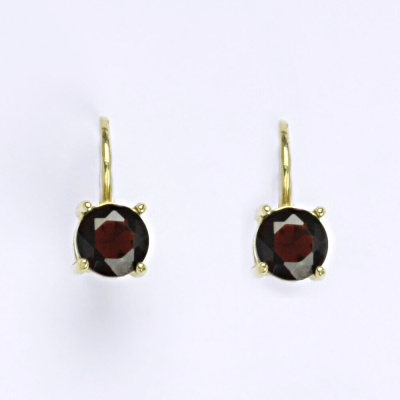 Zlaté náušnice ze žlutého zlata 14 karátů s přírodním granátem. Velikost kamene je 6 mm. Náušnice mají zapínání na klasický patent. Celková výška náušnic je 15 mm. Orientační váha náušnic je 2,01 g.
