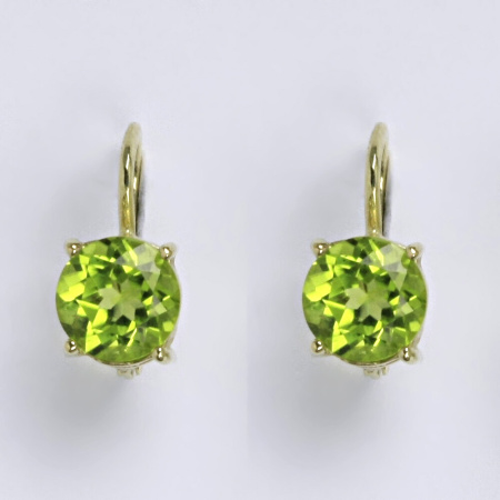 Zlaté náušnice ze žlutého zlata 14 karátů s přírodním olivínem. Velikost kamene je 7 mm. Náušnice mají zapínání na klasický patent. Celková výška náušnice je 14 mm. Orientační váha náušnic je 2,45 g.