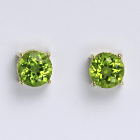 Zlaté náušnice ze žlutého zlata 14 karátů s přírodním olivínem. Velikost kamene je 7 mm. Náušnice mají zapínání na na šroubek. Orientační váha náušnic je 2,52 g.