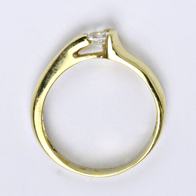 Prsten je vyrobený ze žlutého zlata, je zdobený syntetickým zirkonem 4 mm. Materiál je zlato 14 karátů 585/1000.