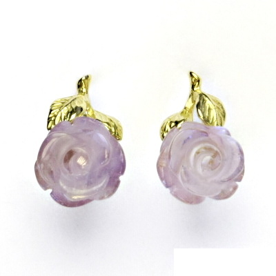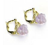 Náušnice ze žlutého zlata jsou zdobeny přírodním ametystem ve tvaru růžičky. Materiál náušnic je zlato 585/1000. Náušnice mají zapínání na patent. Průměr růžičky je cca 10 mm. Orientační váha náušnic je cca 3,97 g.