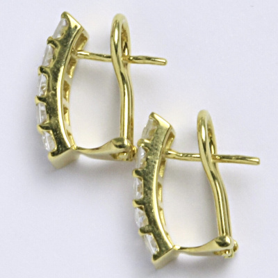 Náušnice jsou vyrobeny ze žlutého zlata 14 karátů 585/1000, zdobené syntetickým zirkonem. Celková velikost náušnice je 16 mm. Při více kusech skladem je váha orientační.